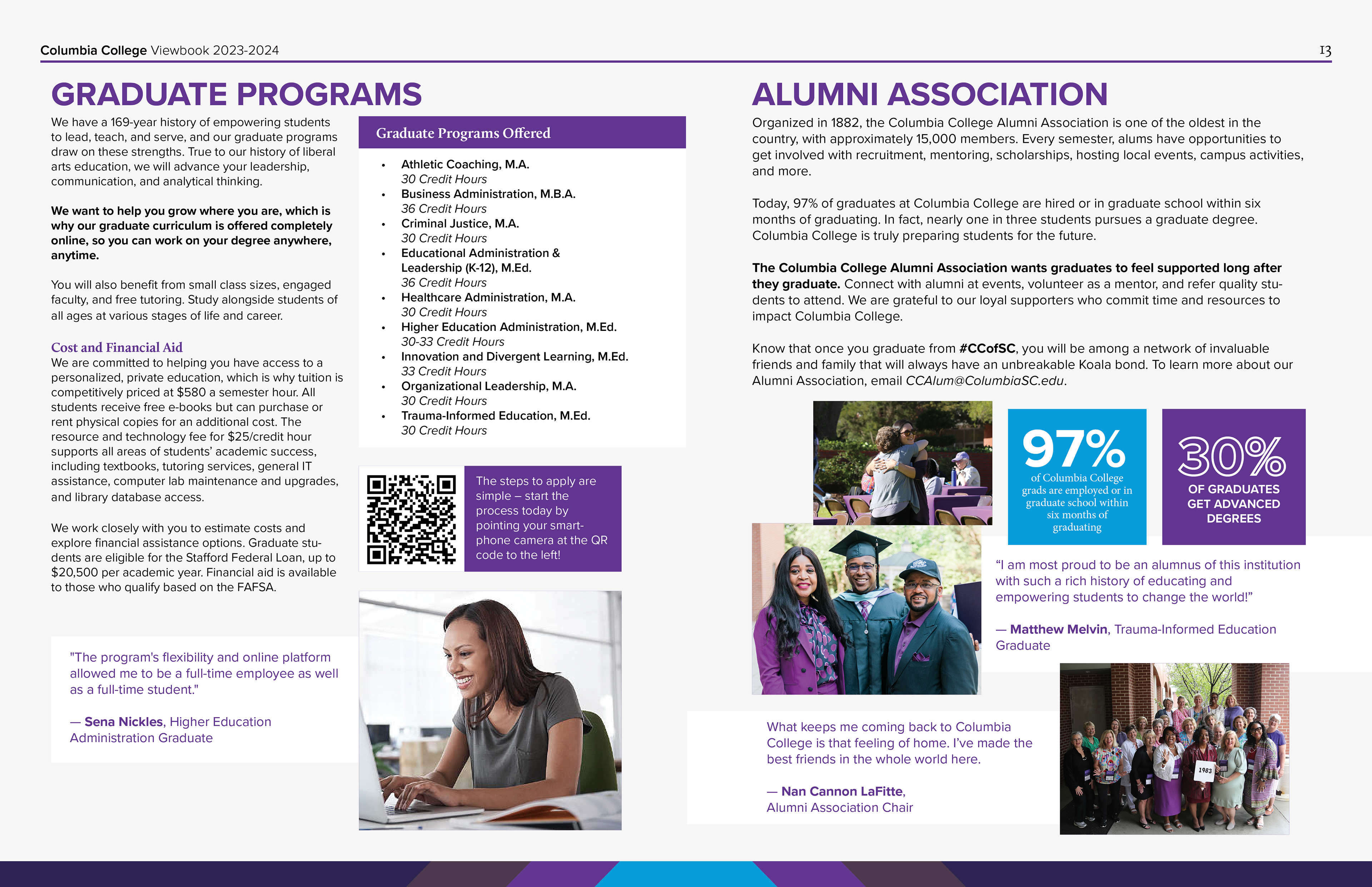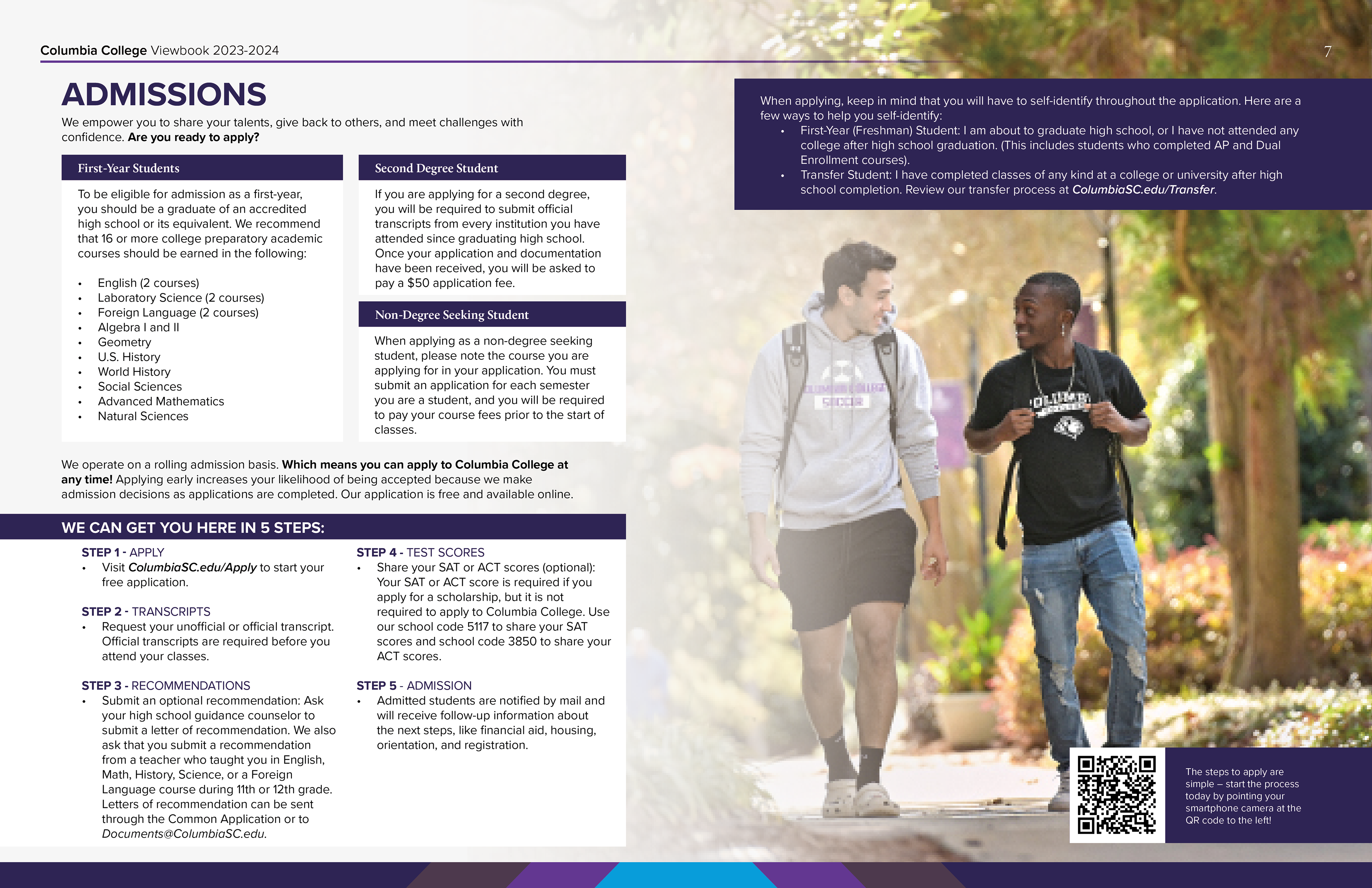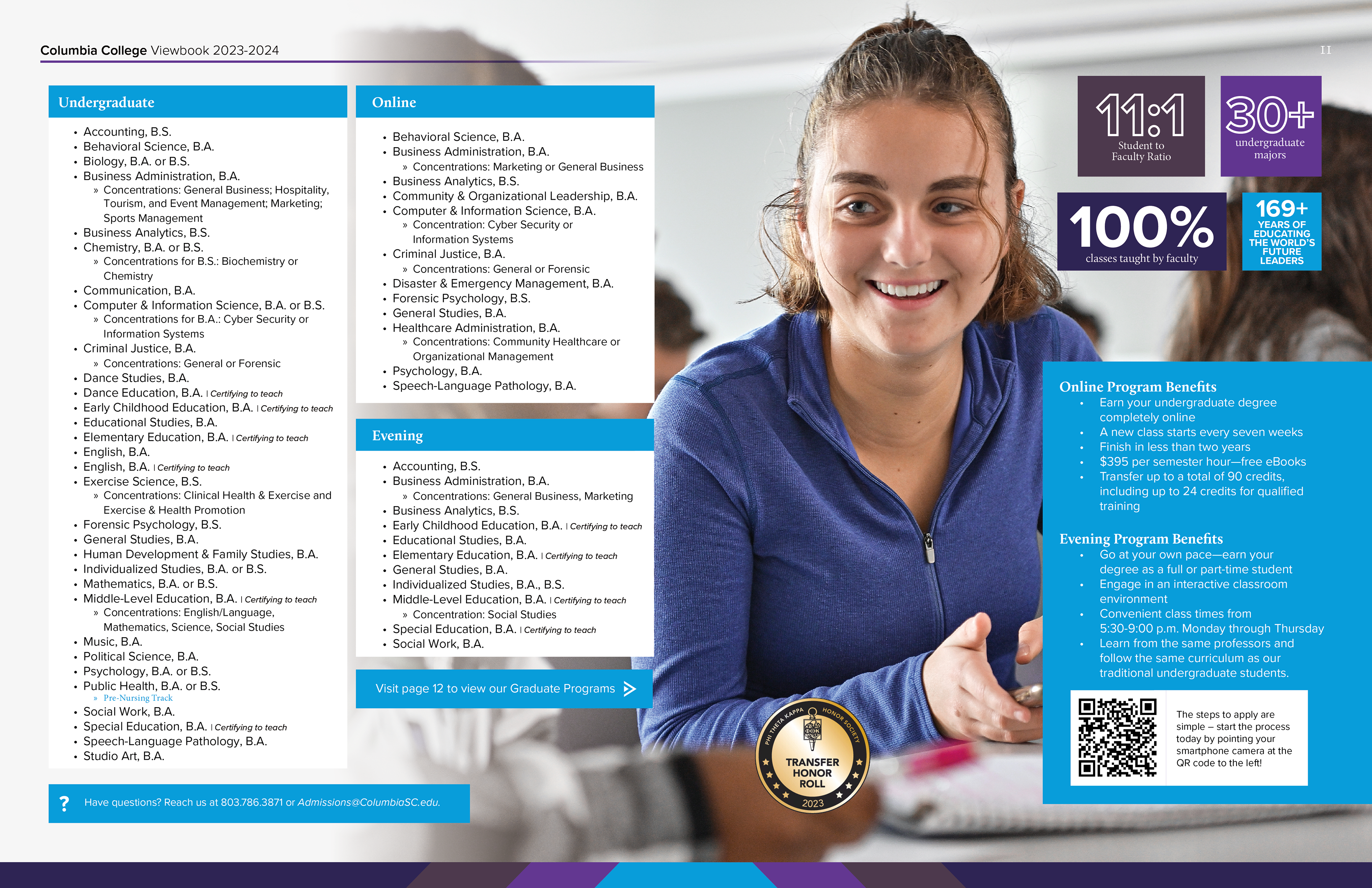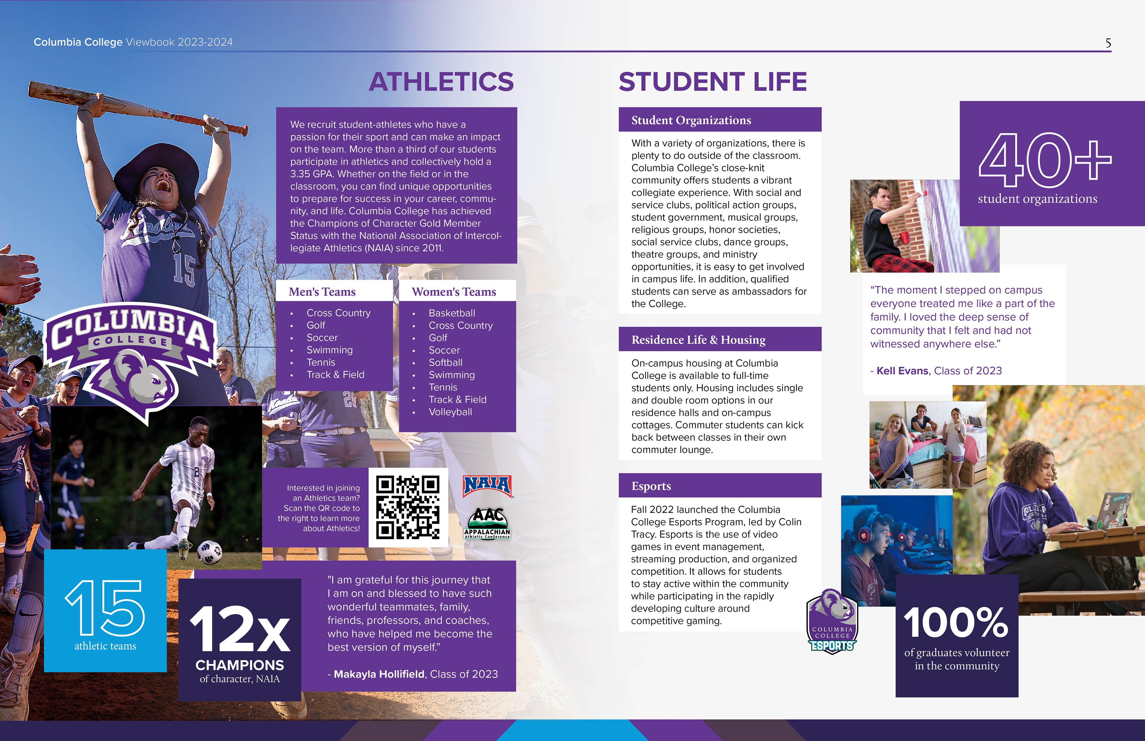 Publication design of Columbia College's Institutional Viewbook for the 23-24 academic year.